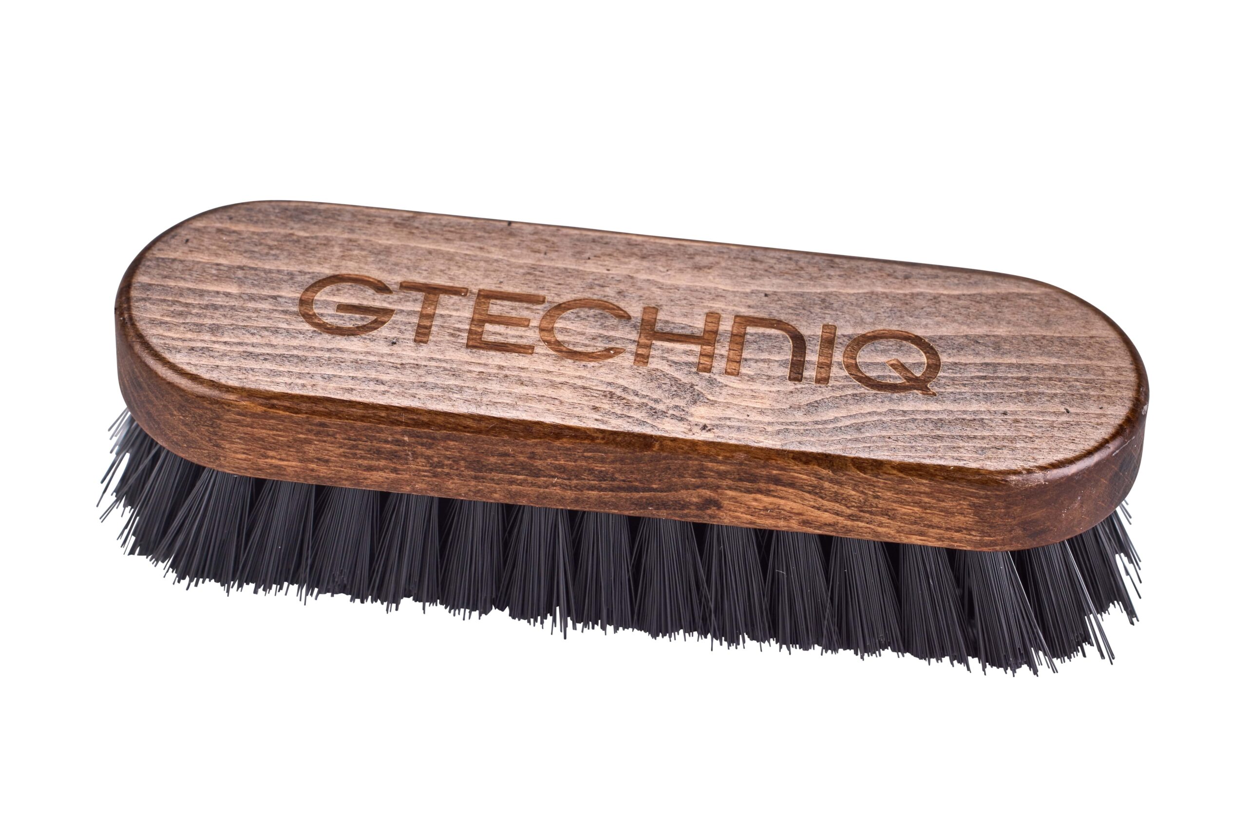 Gtechniq recommends applying a foaming leather cleaner to the brush for best results. The reason for this is that the foam will sit on the surface (as opposed to a liquid that will run into the pad) of the bristles allowing for optimum cleaning.