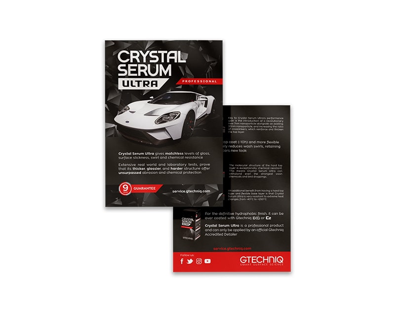A6 size flyer outlining the benefits of Crystal Serum Ultra
