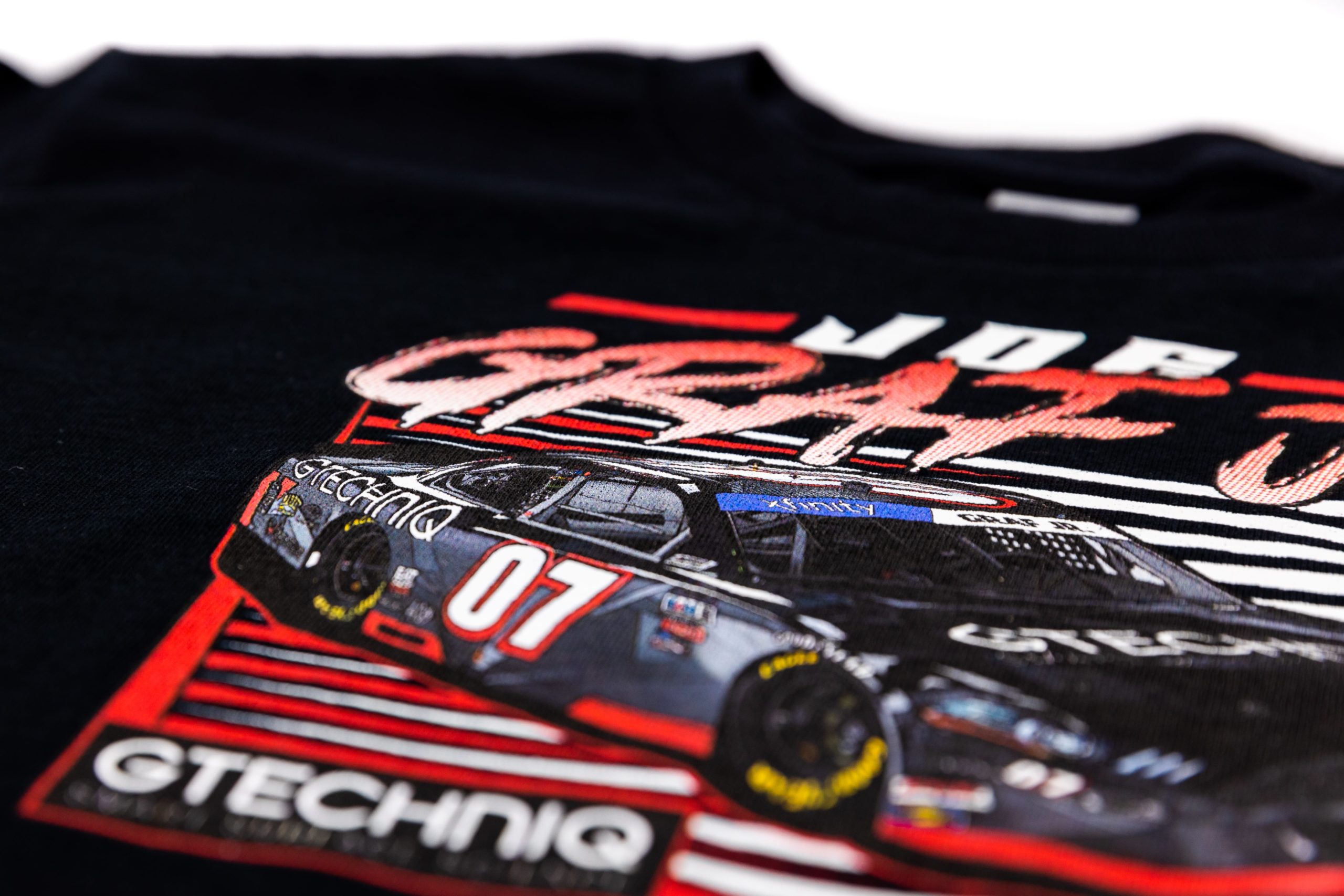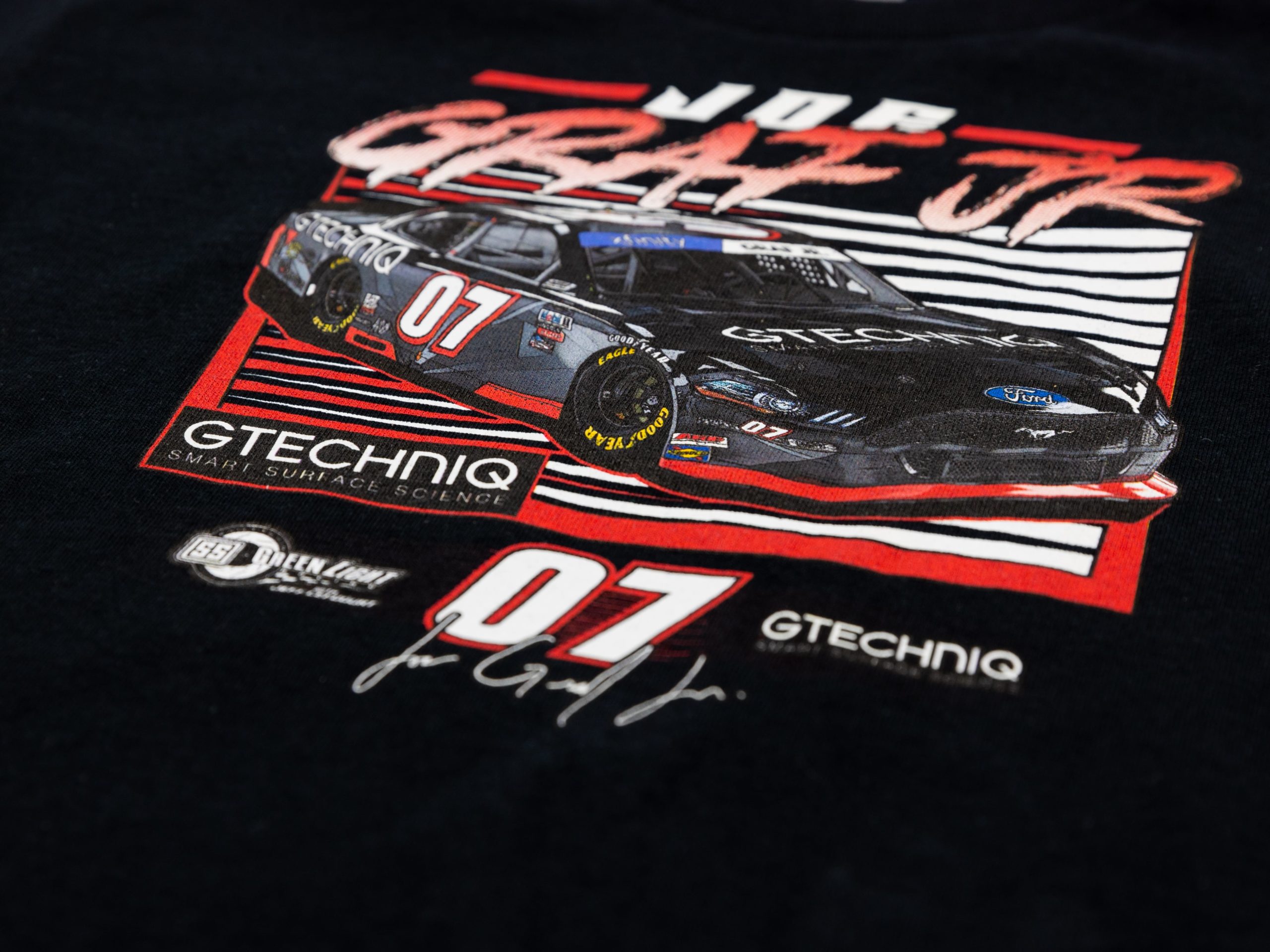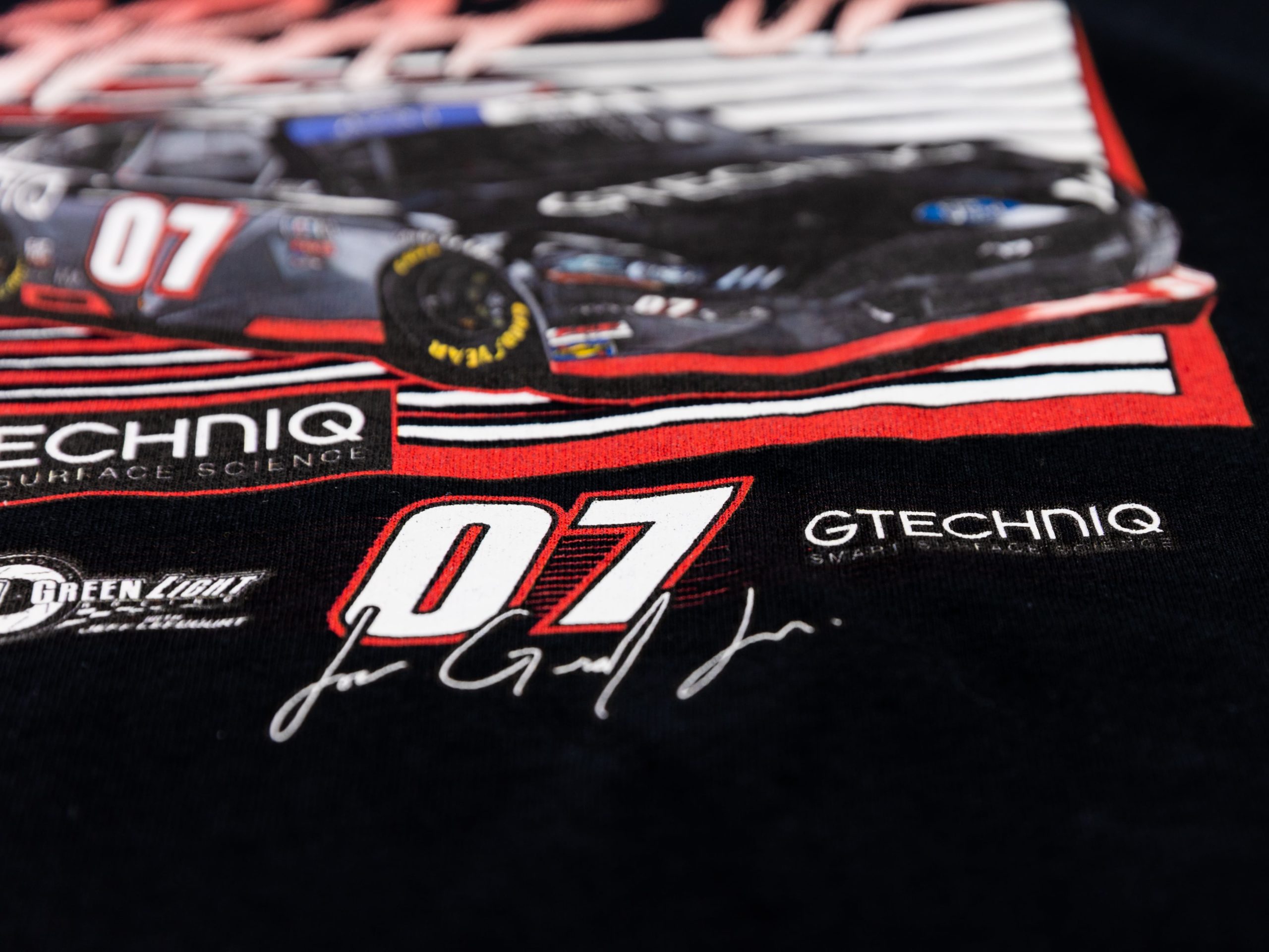 This limited edition shirt features the debut of a Gtechniq race car in the NASCAR Xfinity Series. Gtechniq partnered with SS GreenLight Racing with Jeff Lefcourt (SSGLRwJL) and driver Joe Graf Jr. for the 2022 NASCAR Xfinity Series race at Atlanta Motor Speedway where Gtechniq is featured as the primary sponsor on the #07 Ford Mustang.